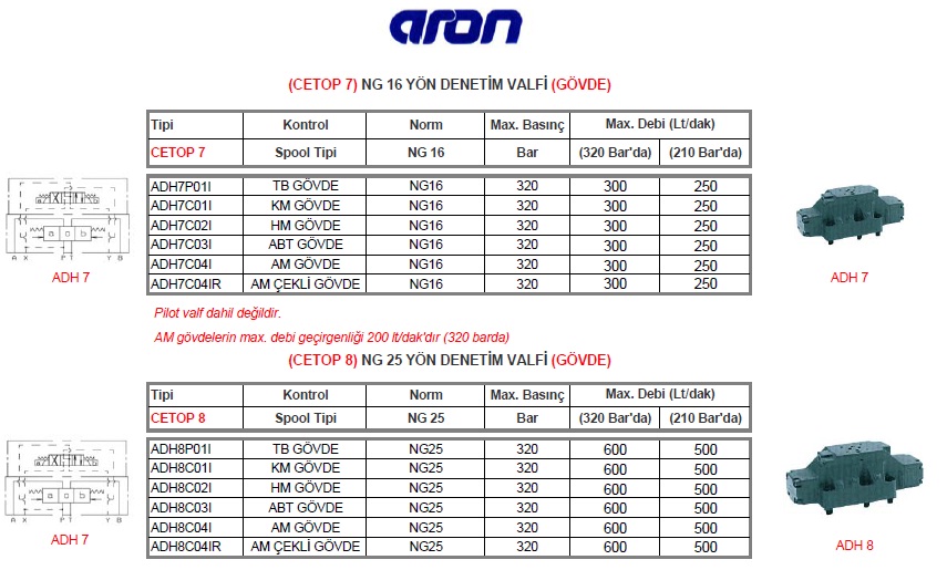 Hidrolik ürünler / Hidrolik Yön Valfleri / Aron Yön Kontrol Valfleri /